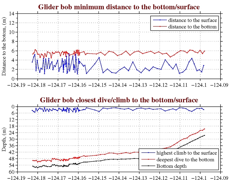 Temperature, Salinity,<br>and Density Temperature, Salinity,<br>and Oxygen Chlorophyll, CDOM,<br>and Backscatter Closest Dive/Climb to<br>the Bottom/Surface