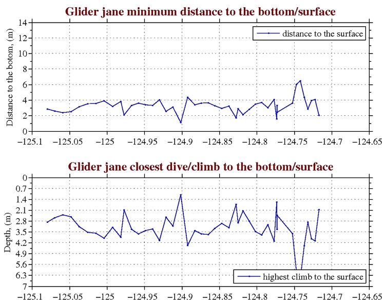 Temperature, Salinity,<br>and Density Temperature, Salinity,<br>and Oxygen Chlorophyll, CDOM,<br>and Backscatter Closest Dive/Climb to<br>the Bottom/Surface
